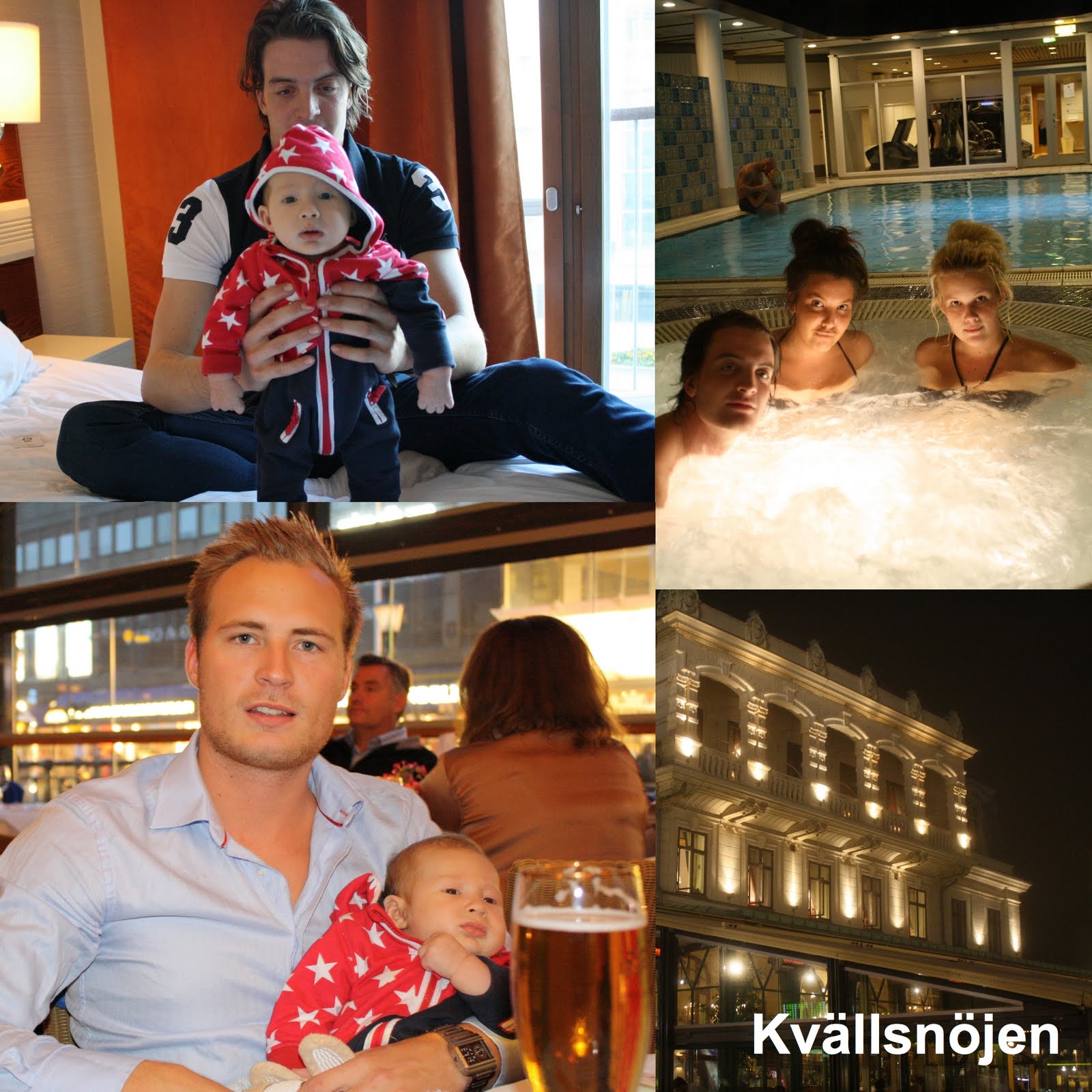 Eftersom vi bott på hotellet tidigare så vet vi att de har en jättebra relax- spa- avdelning. Att vi alla fyra skulle kunna bada och ha det skönt samtidigt hade vi knappast räknat med. Men när vi kom in genom dörrarna till avdelningen så slocknade sötnosen. I normala fall brukar vi få gunga vagnen i en kvart eller något men inte idag. Killen var nog väldigt trött efter en 30 mil lång bilfärd och fyra timmars rantande på stan. Som vi har längtat efter att simma och bada. Detta var underbart härligt. Att njuta som vi gjort denna helgen trodde vi inte riktigt att vi skulle få göra. Men tydligen så fungerar det hur bra som helst att dra iväg en helg såhär som vi gjort. Att ha Milo med och att se ha så nyfiken hela tiden är jätteroligt. Klart att vår lille kille skall få komma iväg och se saker han med. Ja, Milo verkade verkligen njuta av hotellet precis som mamma och pappa! Nedan kommer en blandad bild från en underbar lördag i Göteborg..